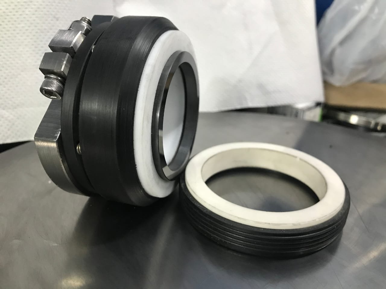 Selo tipo RSAflon selos para indústria que utilizam , produtos altamente corrosivos ,é confeccionado ,em matérias,como Teflon,Teflon grafitado, cerâmica, silício,plásticos ,inox 316L ,pode ser fabricado em diversas medidas